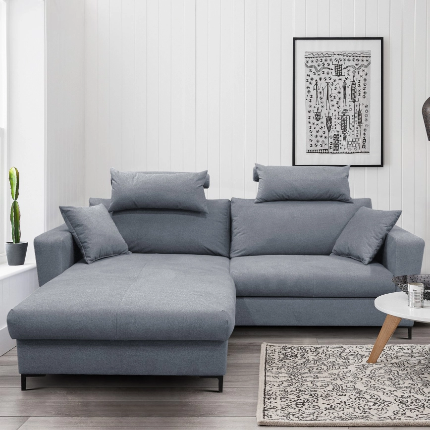 • Rozkladacia rohová sedacia súprava s úložným priestorom v tvare L HORTA, pravá, sivá