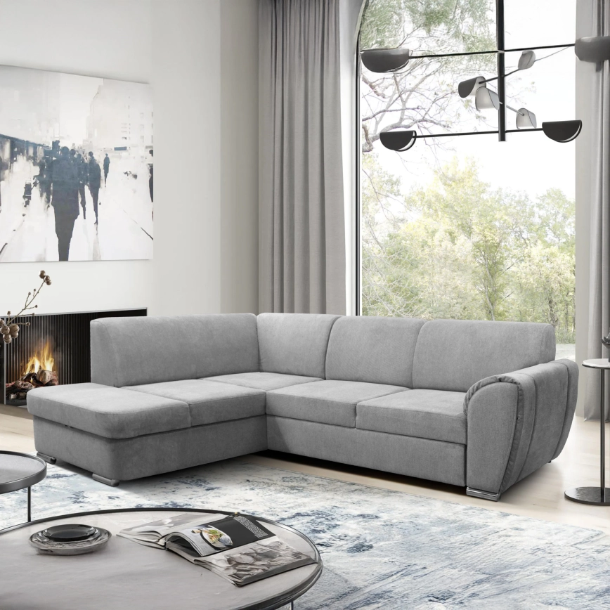Rozkladacia rohová sedacia súprava v tvare L SERPA s úložným priestorom, ľavé prevedenie, sivá