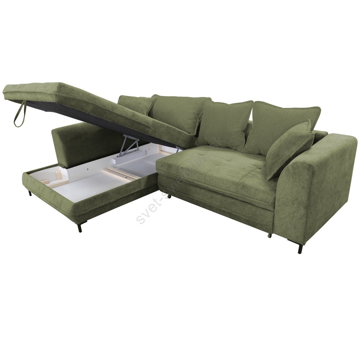 • Rozkladacia rohová sedacia súprava LAGOA v tvare L, pravé prevedenie, zelená, s úložným priestorom