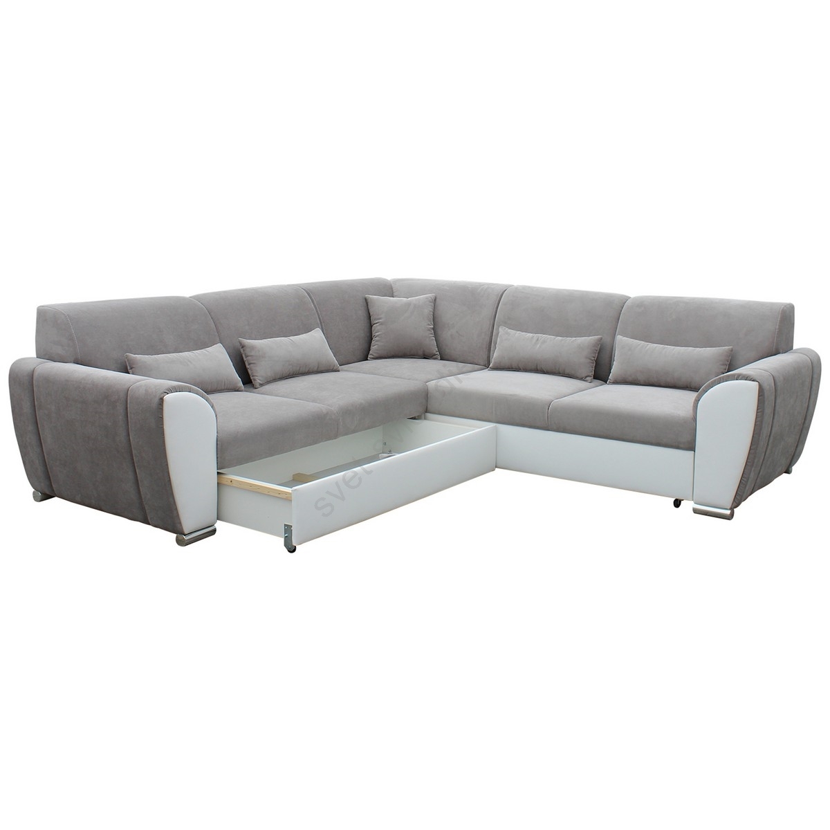 • Rozkladacia rohová sedacia súprava VISEU v tvare L, pravé prevedenie, sivá/biela, s úložným priestorom