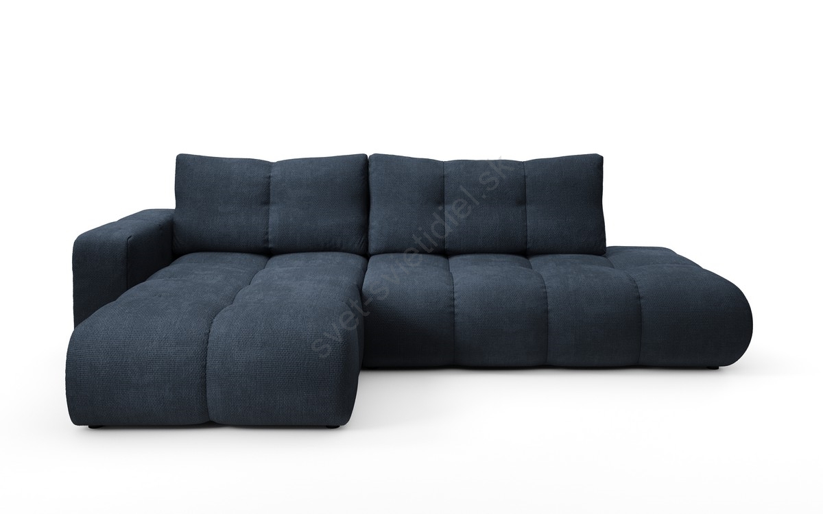 • Rozkladacia rohová čalúnená sedacia súprava s úložným priestorom do tvaru L ALMADA ľavá modrá
