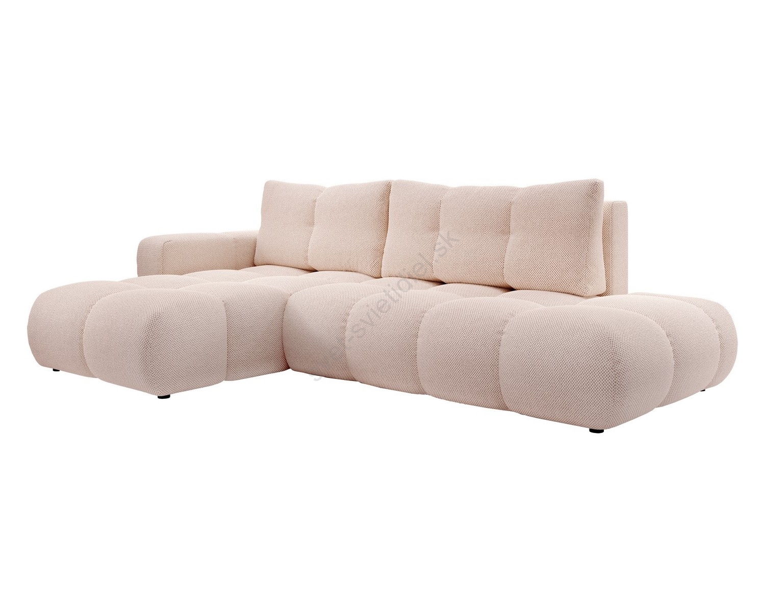 • Rozkladacia rohová čalúnená sedacia súprava s úložným priestorom do tvaru L ALMADA ľavá svetlobéžová