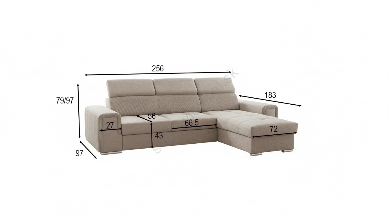 • Univerzálna rohová rozkladacia sedacia súprava v tvare L s úložným priestorom SALVADA béžová