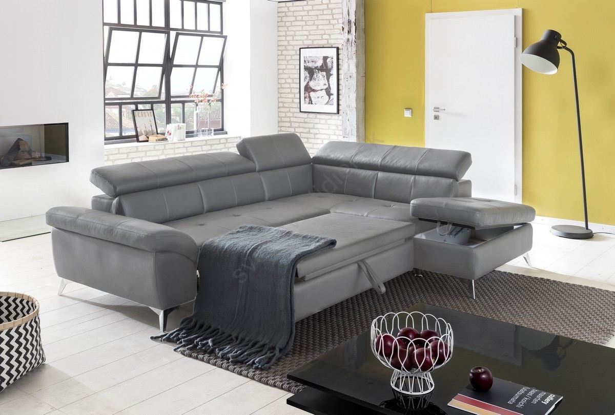 • Rozkladacia kožená rohová sedacia súprava do L SALERNO II pravá sivá