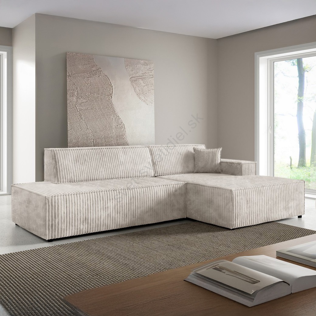 Rozkladacia rohová sedacia súprava s úložným priestorom do tvaru L TERAMO pravá béžová