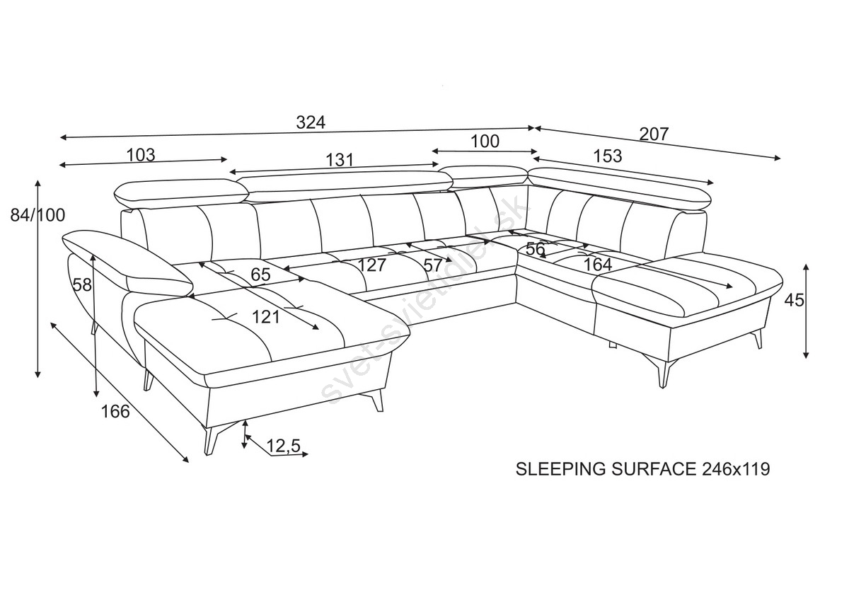 • Táto sedačka v tvare U spája pohodlie, funkčnosť a moderný vzhľad v jednom kuse.