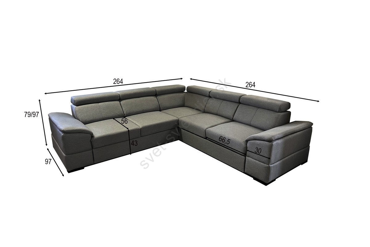 • Univerzálna rohová rozkladacia sedacia súprava s úložným priestorom GRANADA sivá