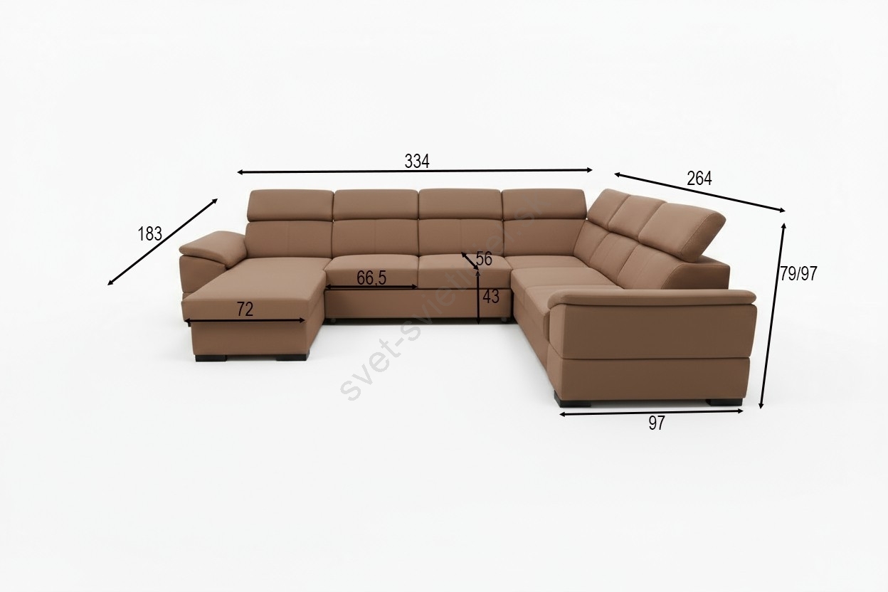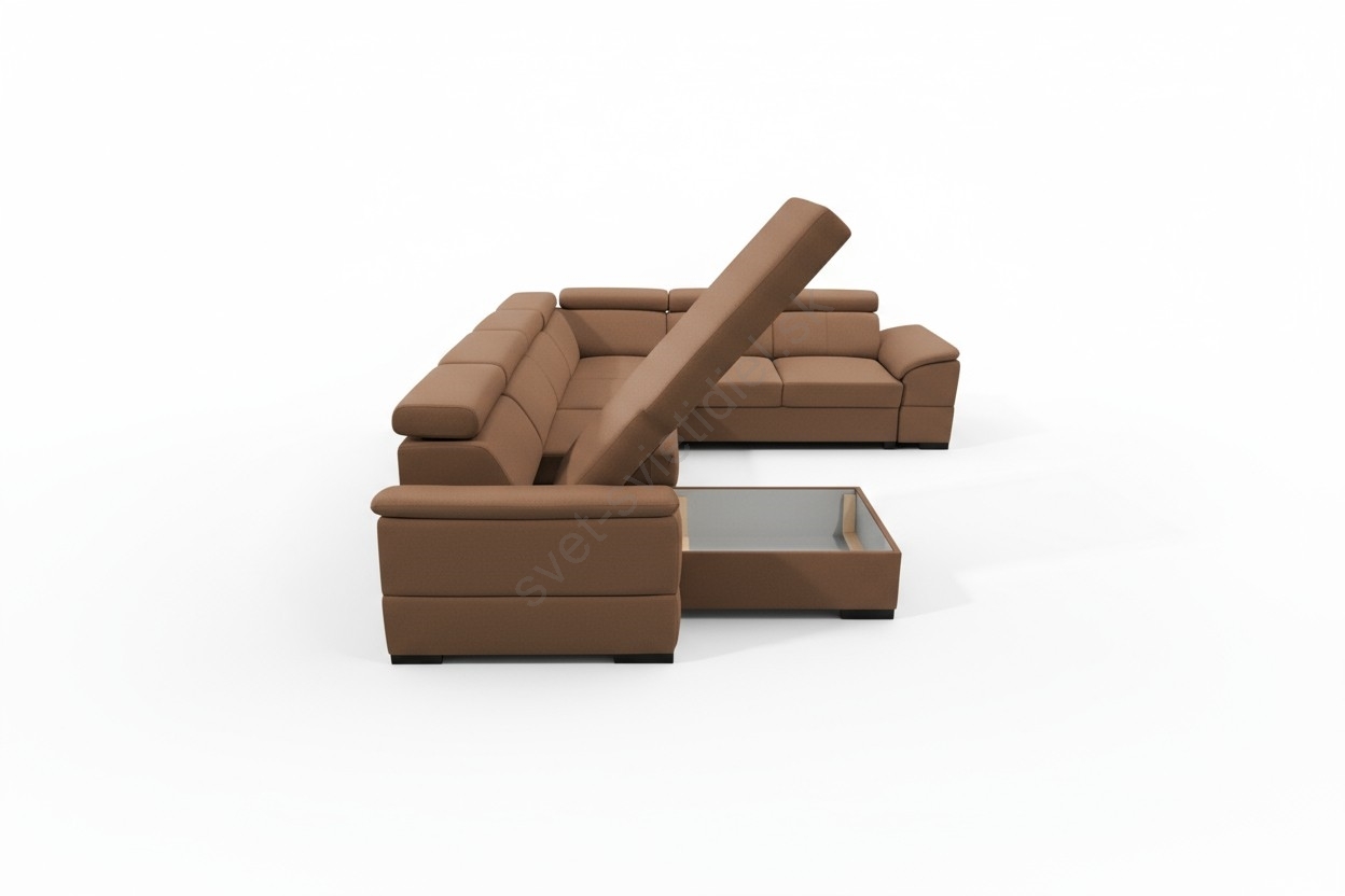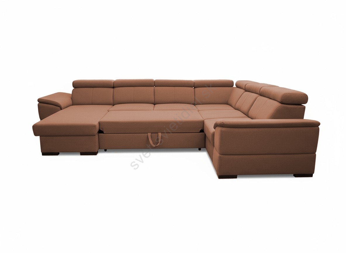• Rozkladacia sedacia súprava GRANADA do tvaru U s univerzálnym rohom a úložným priestorom, hnedá