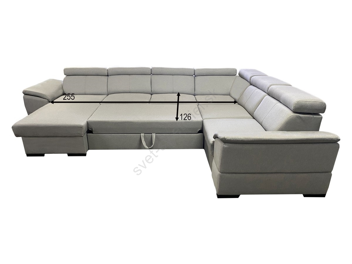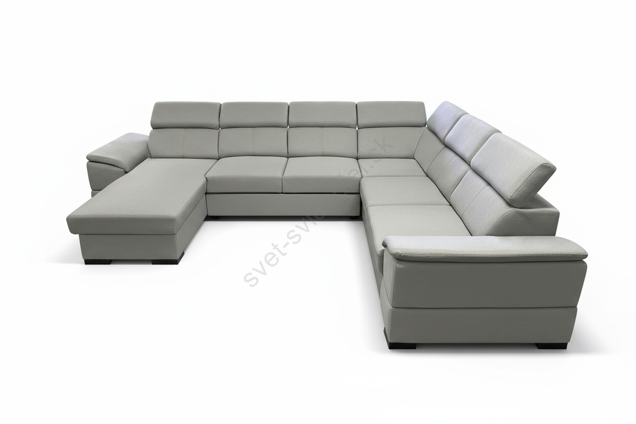 • Rozkladacia sedacia súprava GRANADA s univerzálnym U-rohom a úložným priestorom, svetlosivá