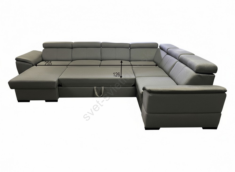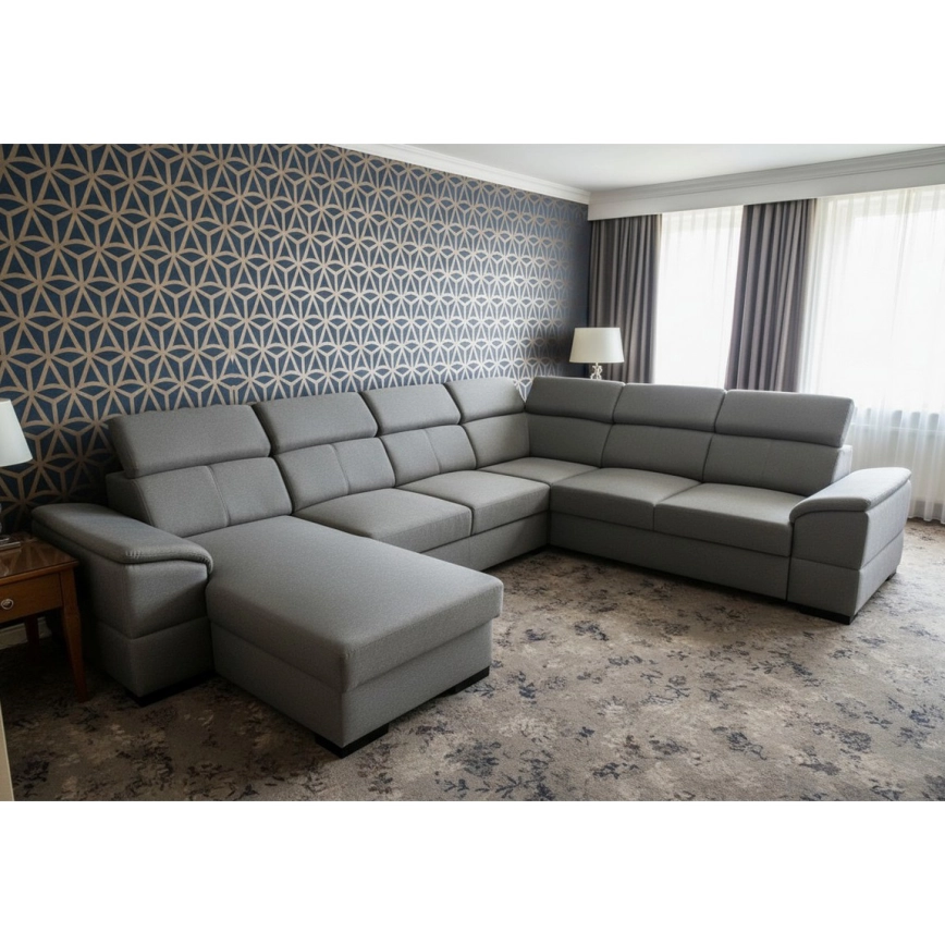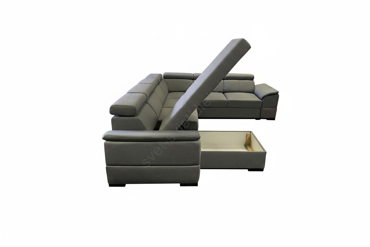 • Rozkladacia sedacia súprava GRANADA s univerzálnym U-rohom a úložným priestorom, svetlosivá