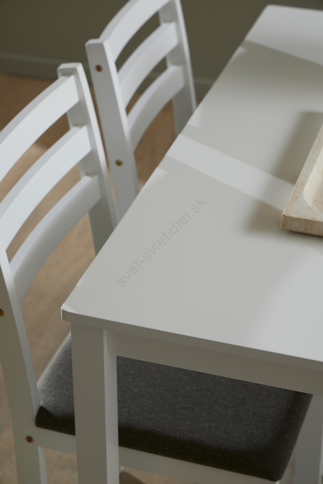 • Stôl: doska biela AC lakovaná MDF.