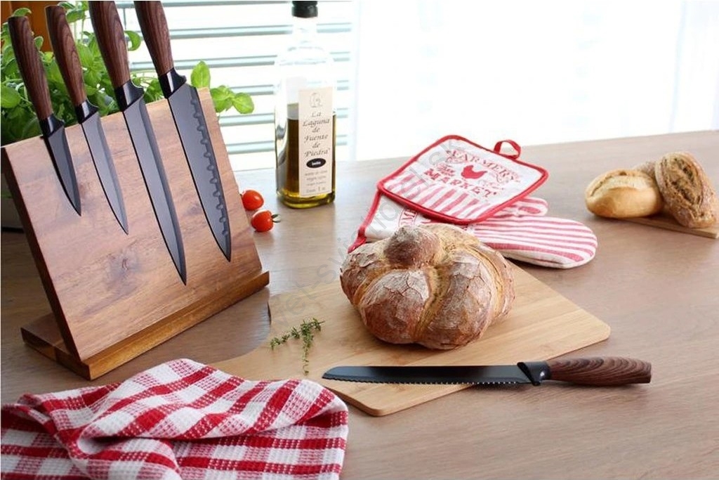 • Obsahuje 5 najpoužívanejších typov nožov - kuchársky nôž, chlebový nôž, porciovací nôž, univerzálny nôž a lúpací nôž.
