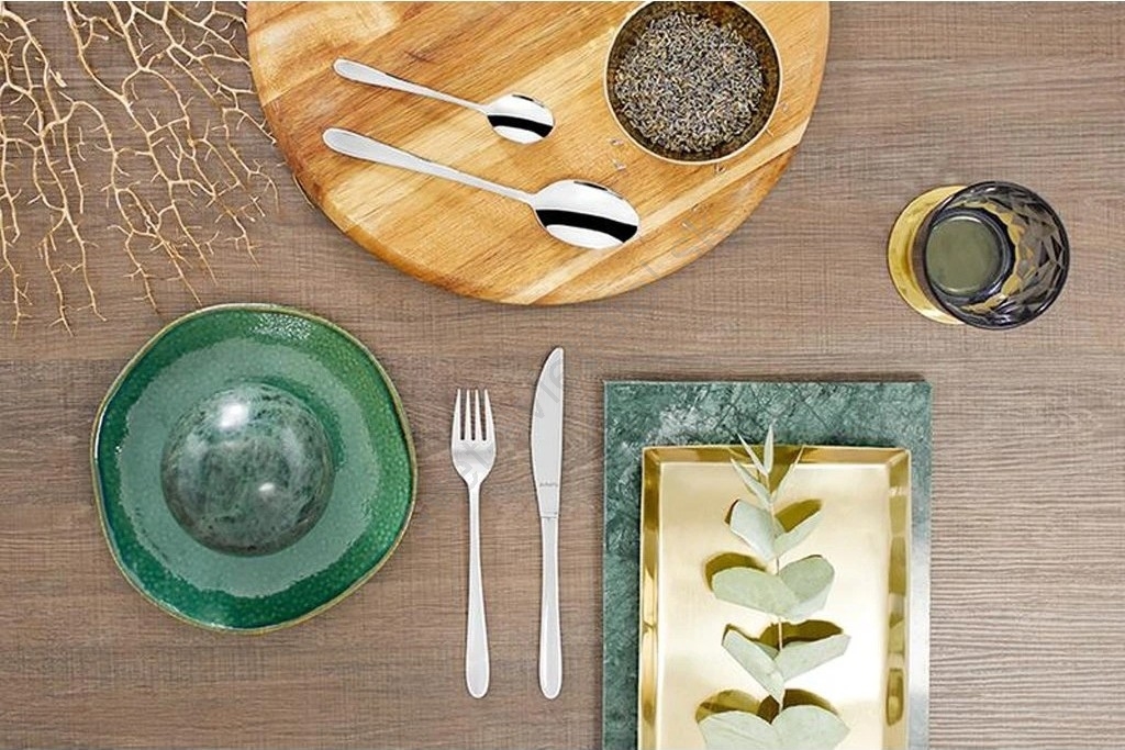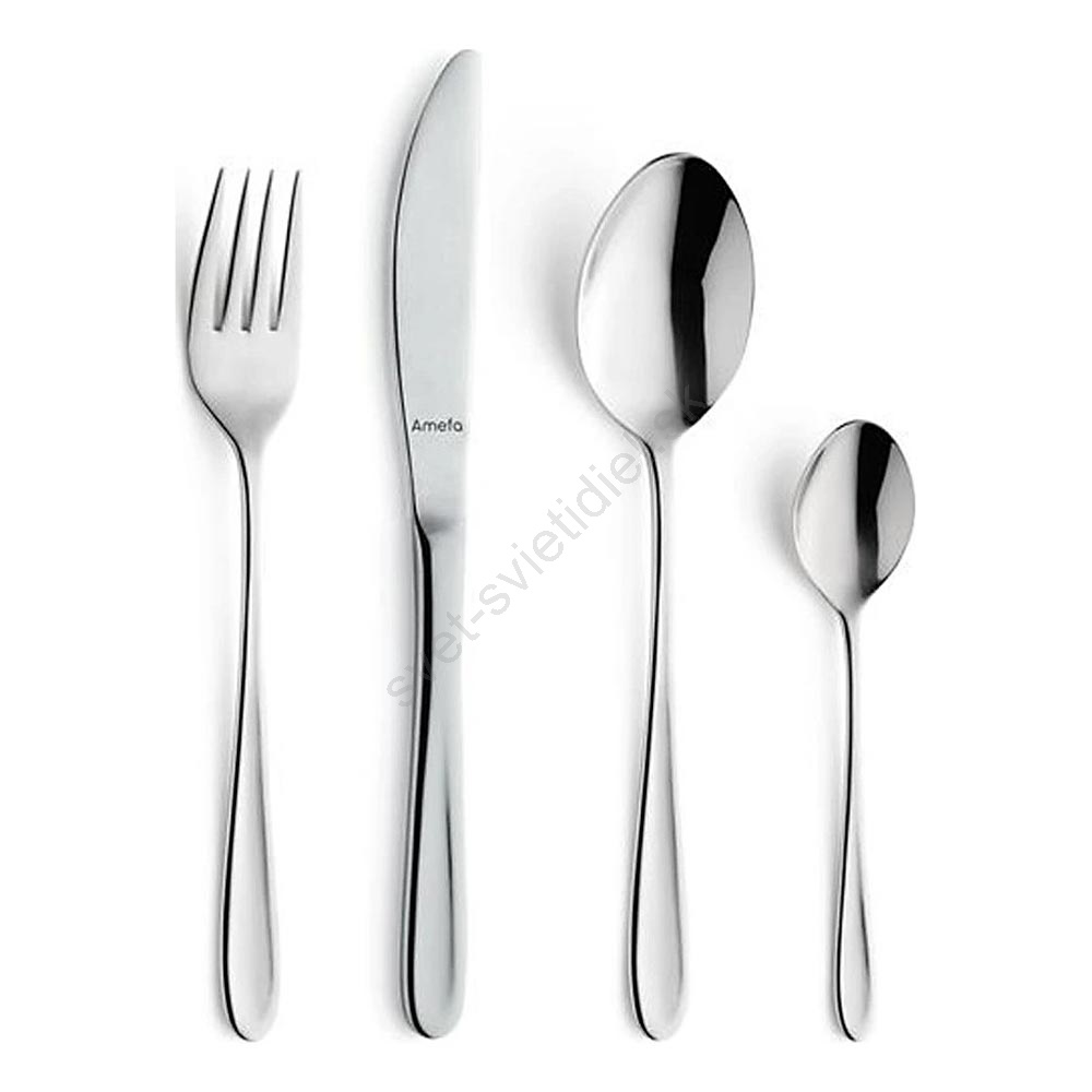 • Súprava jedálenských príborov z nerezovej ocele v lesklej chrómovej farbe.