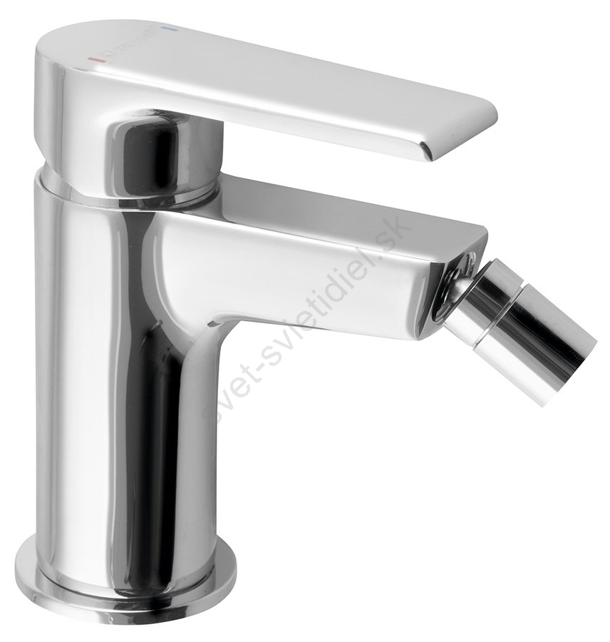 • Táto bidetová batéria má valcové telo a hranatú výtokovú hubicu.