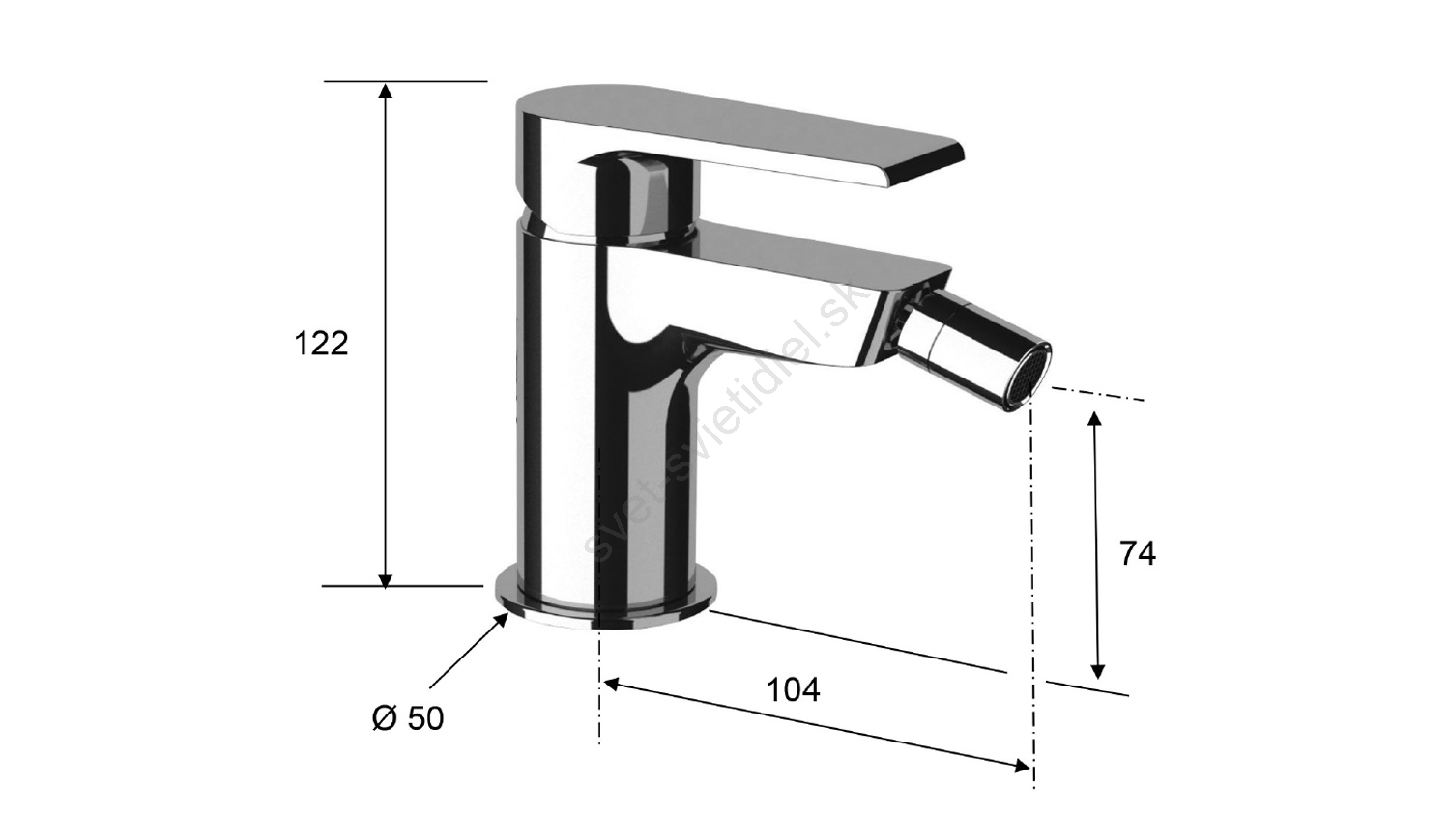 • Táto bidetová batéria má valcové telo a hranatú hubicu.