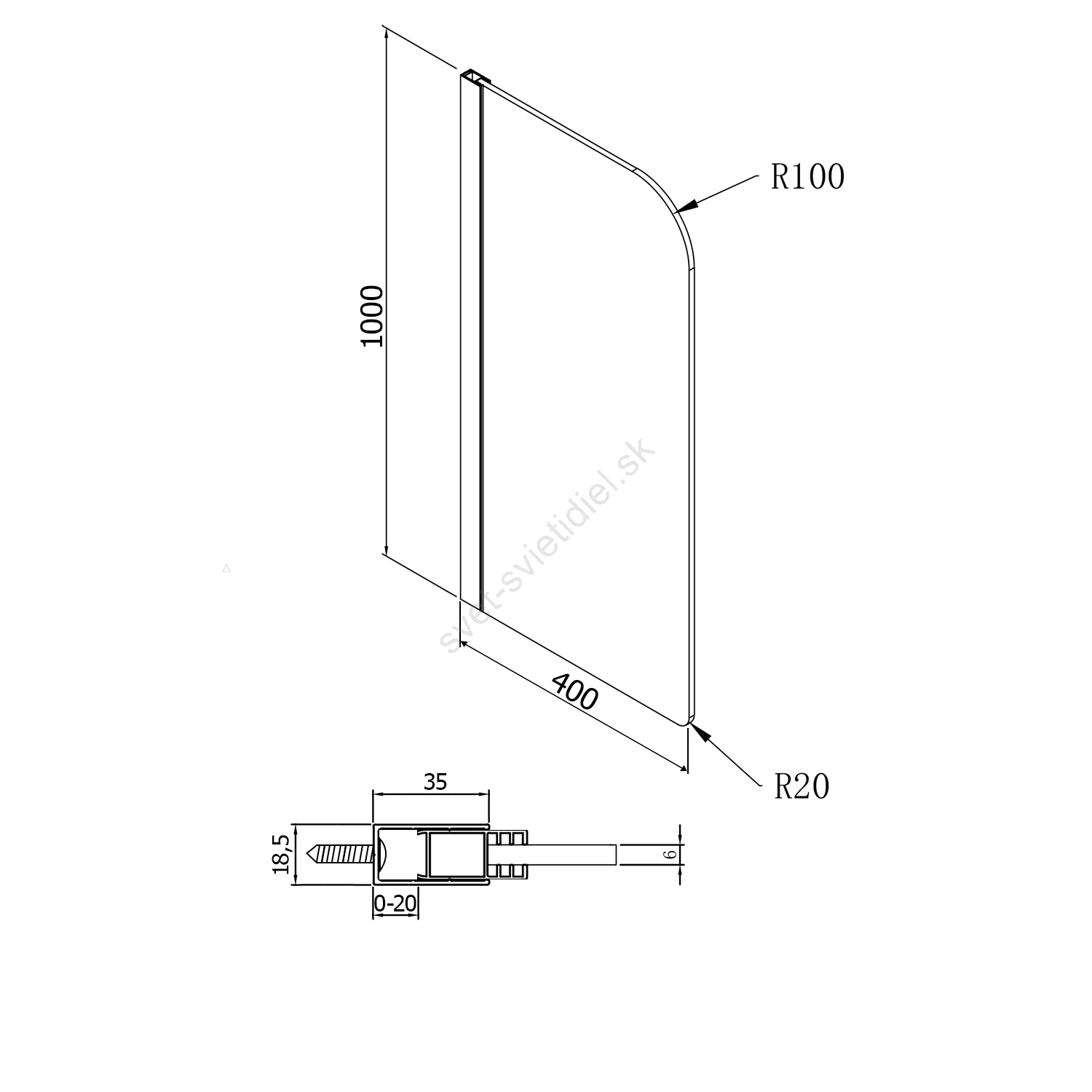 Sapho - Deliaca stena pre pisoáre 40x100 cm z matného skla