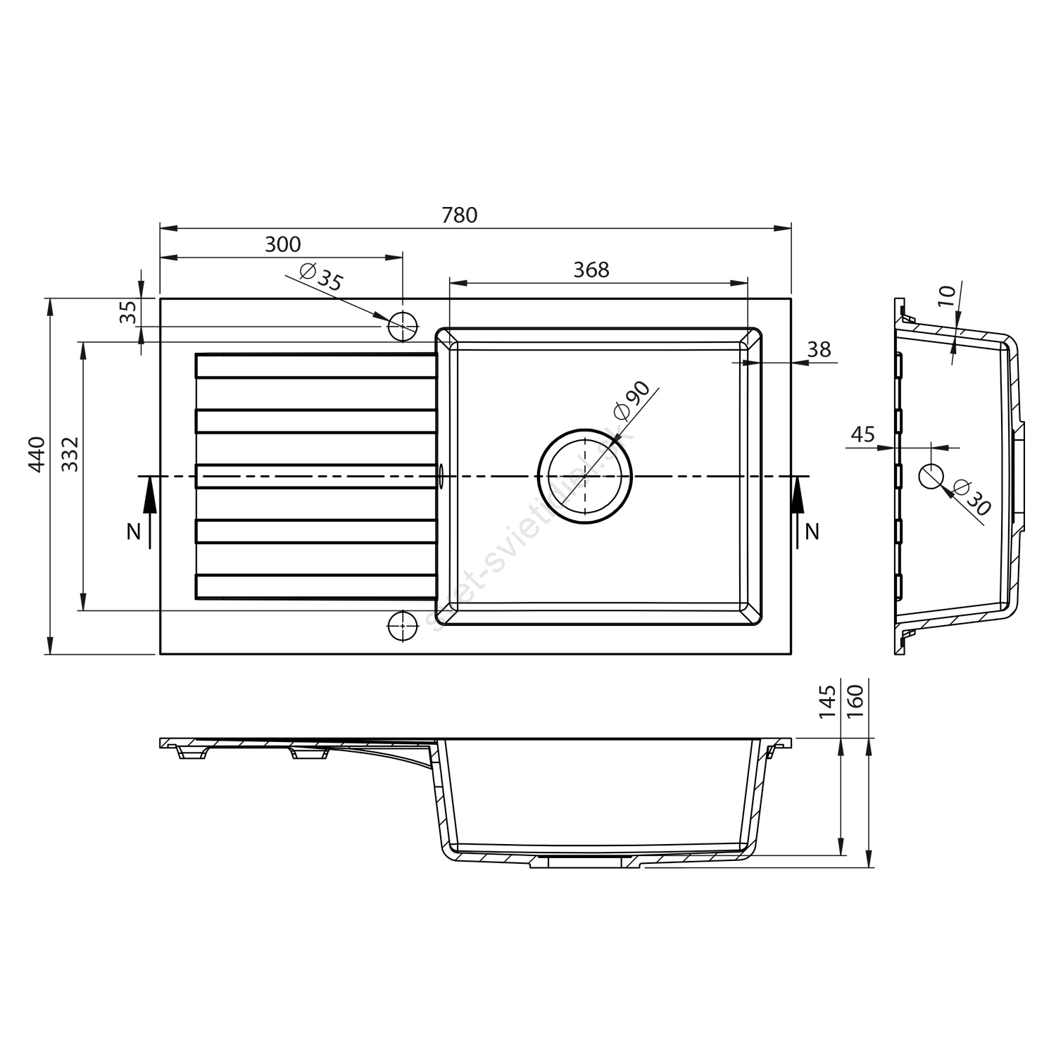 • Obsahuje odtokovú mriežku so sifónom a odpadom DN40.