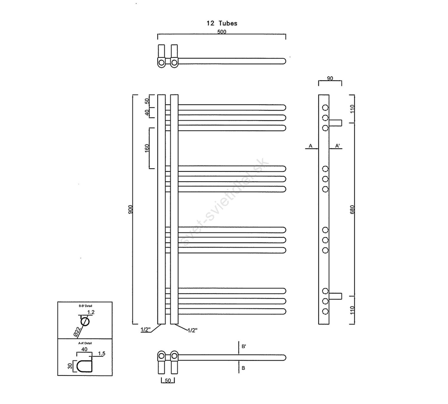 Sapho - Kúpeľňový radiátor DORLION 300W/230V 50x90 cm matná čierna