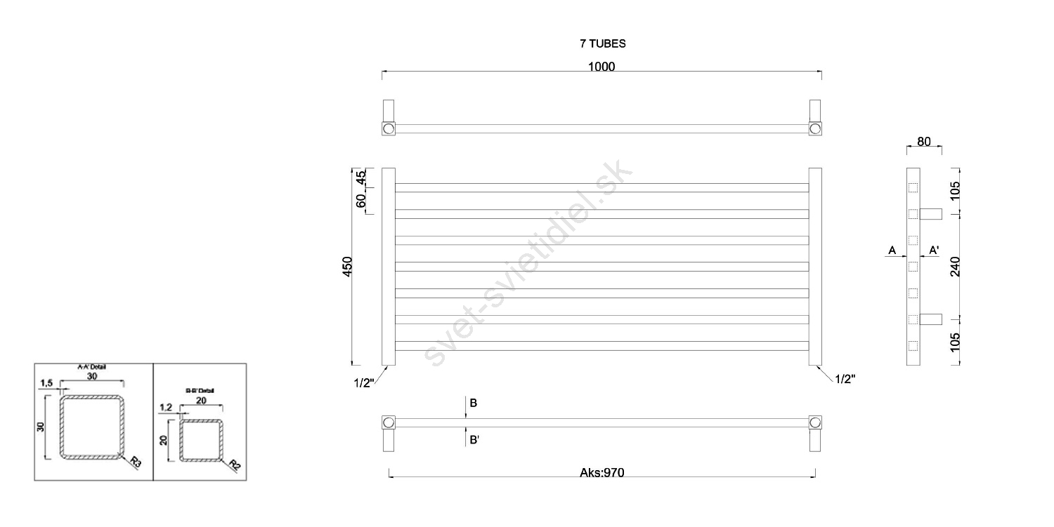 Sapho - Kúpeľňový radiátor METRO 295W/230V 100x45 cm lesklý chróm