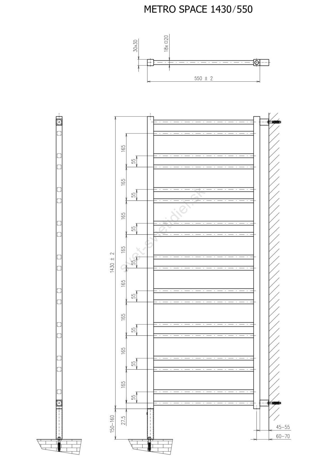 Sapho - Kúpeľňový radiátor METRO SPACE 525W 55x143 cm matná čierna