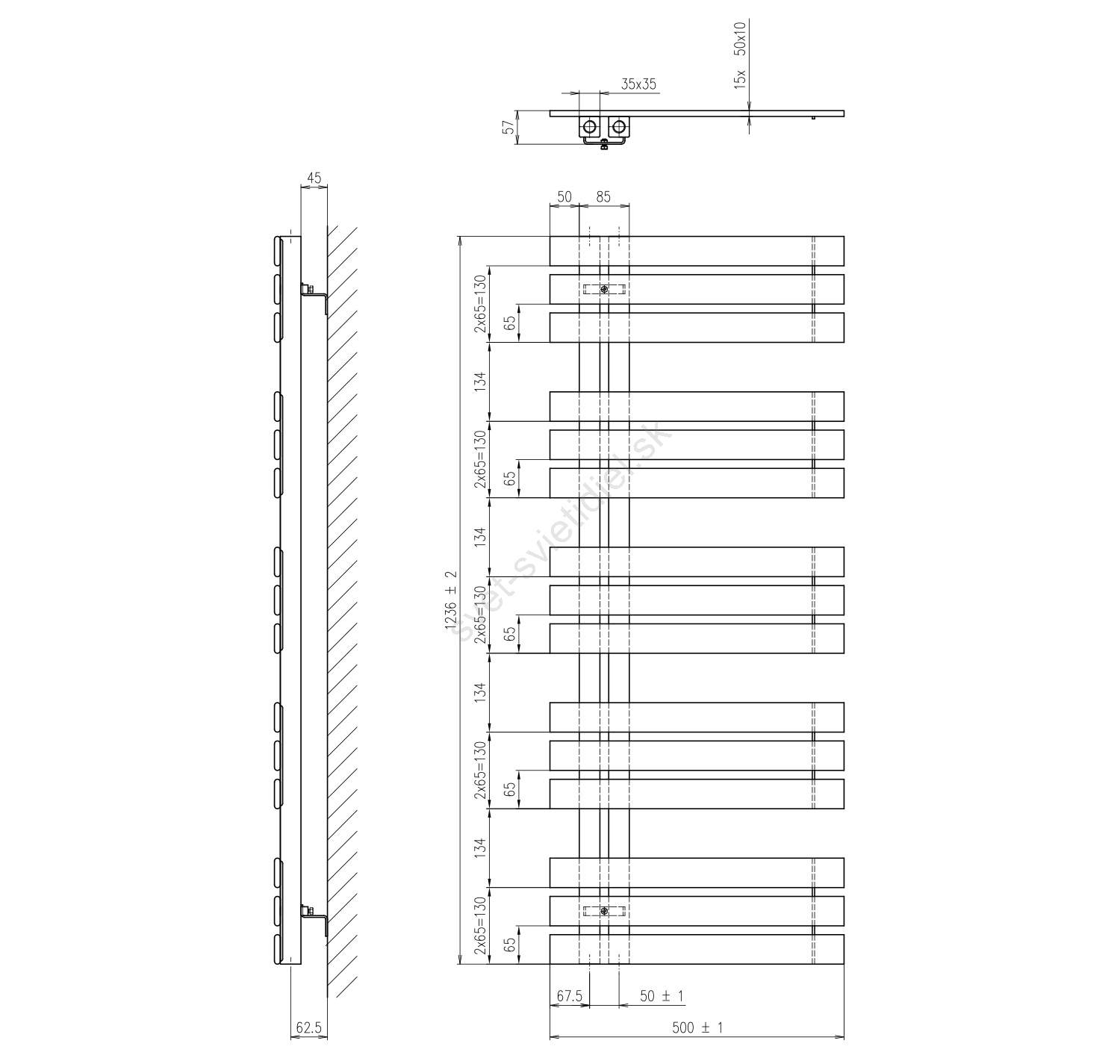 Sapho - Kúpeľňový radiátor SILVANA 500W/230V 50x123 cm biela