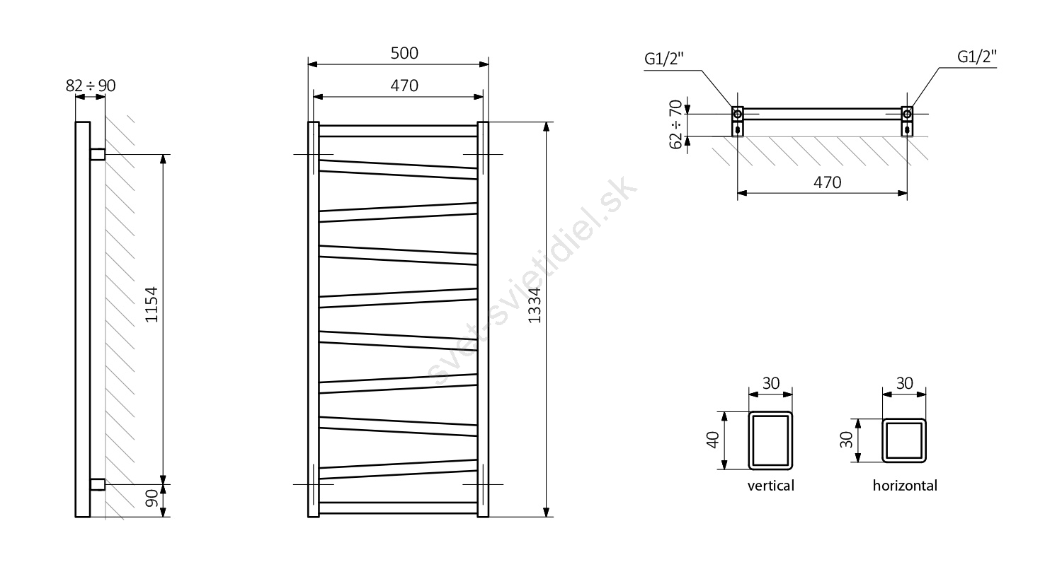 Sapho - Kúpeľňový radiátor ZIG 490W/230V 50x133 cm antracit