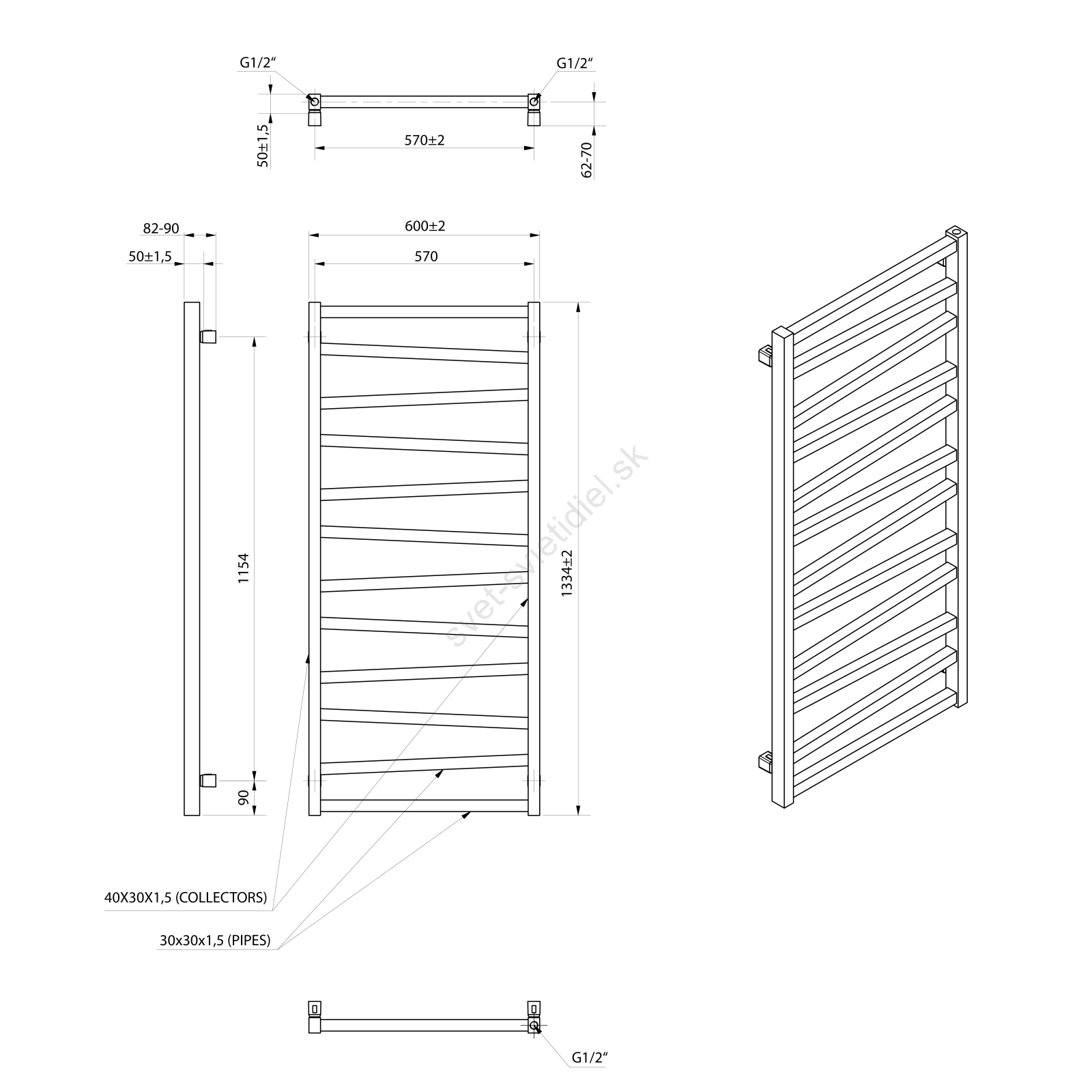 Sapho - Kúpeľňový radiátor ZIG 601W/230V 60x133 cm čierny