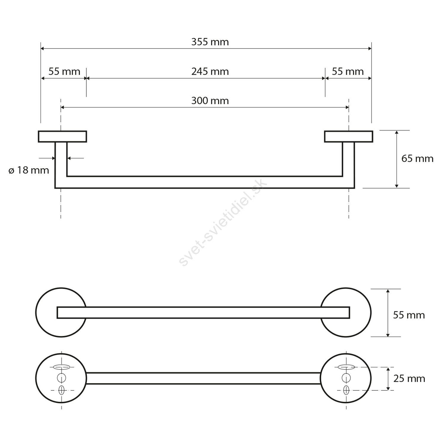 Sapho - Nástenný vešiak na uteráky X-ROUND 35,5 cm matná čierna