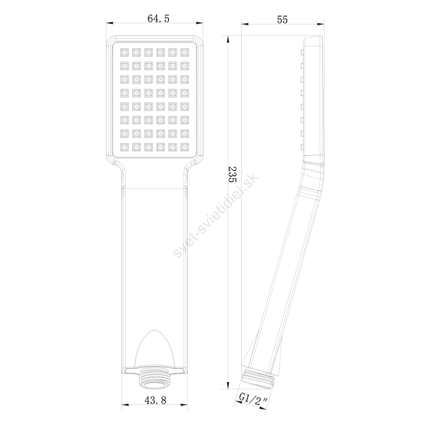 • Táto ručná sprcha má výšku 235 mm a šírku 65 mm.