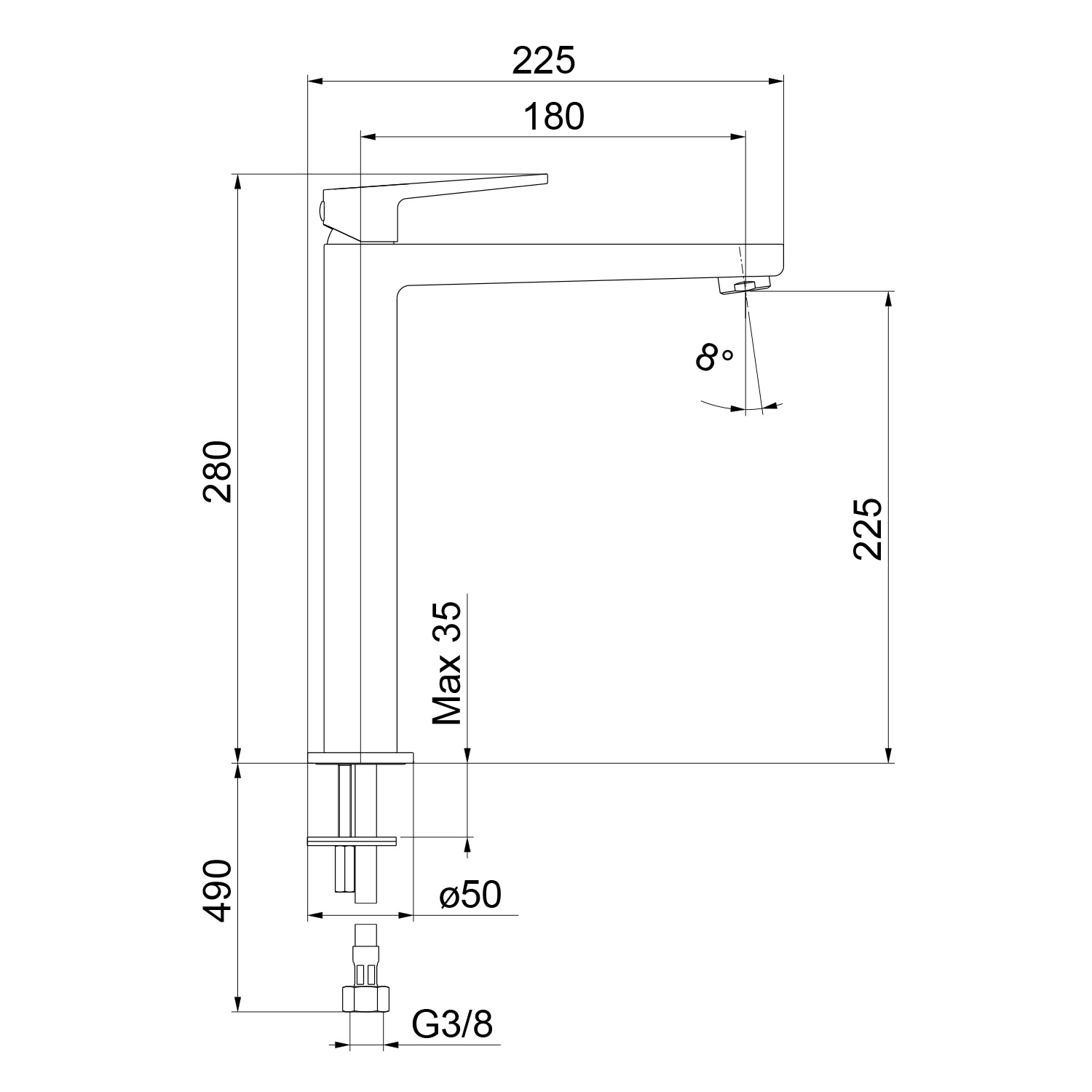 • Výška výtoku je 225 mm a hĺbka 225 mm.