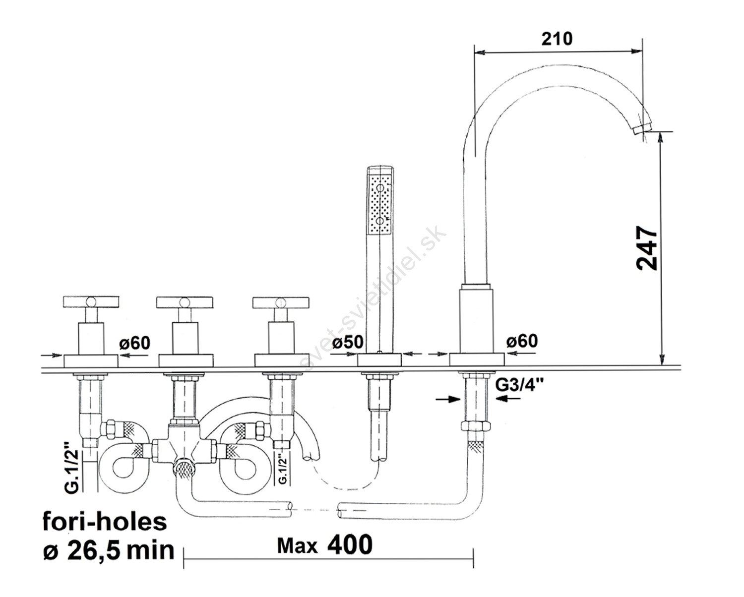 Sapho - Vaňová batéria 5-otvorová AXIA lesklý chróm