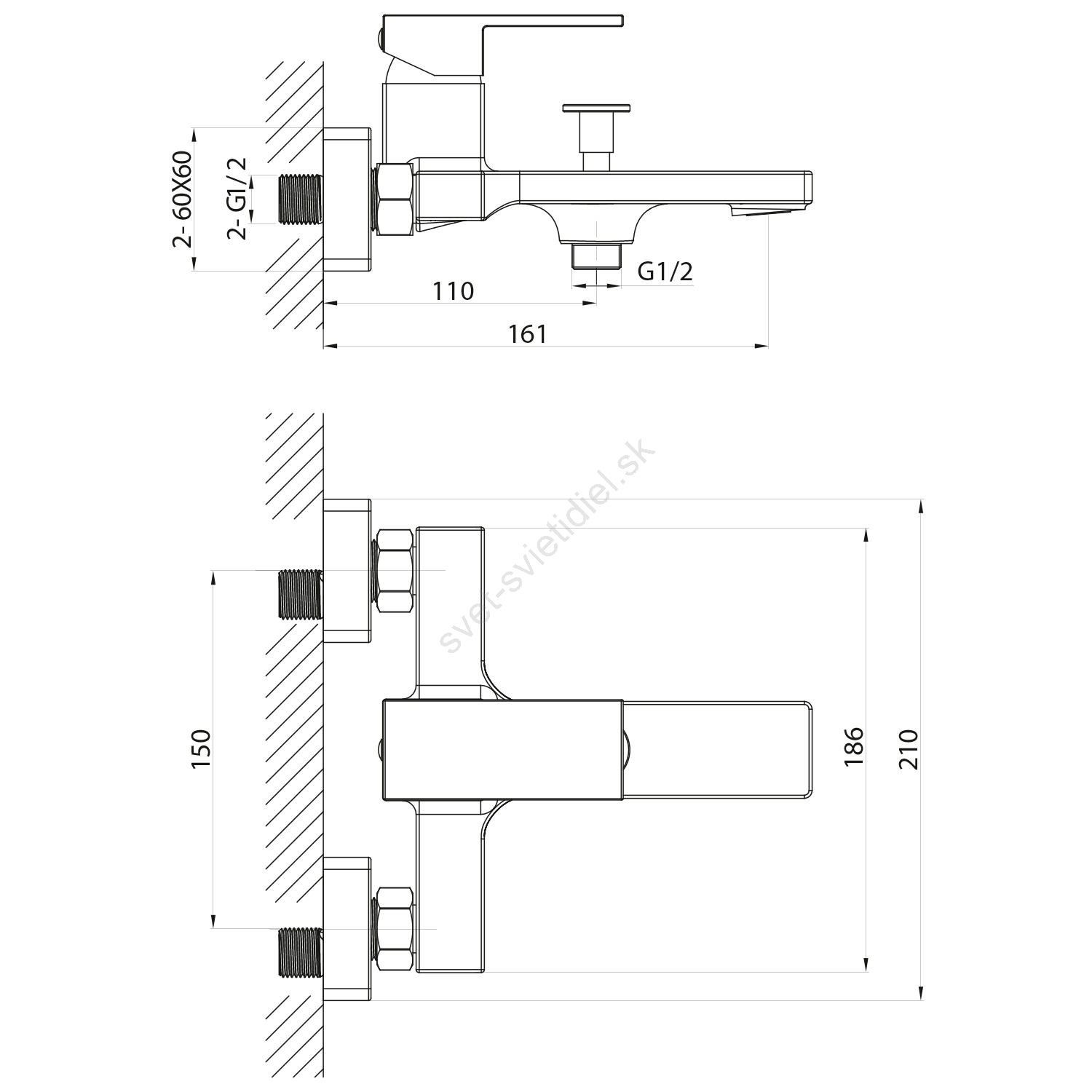 • Inštalácia je nástenná a ovládanie je pákové.