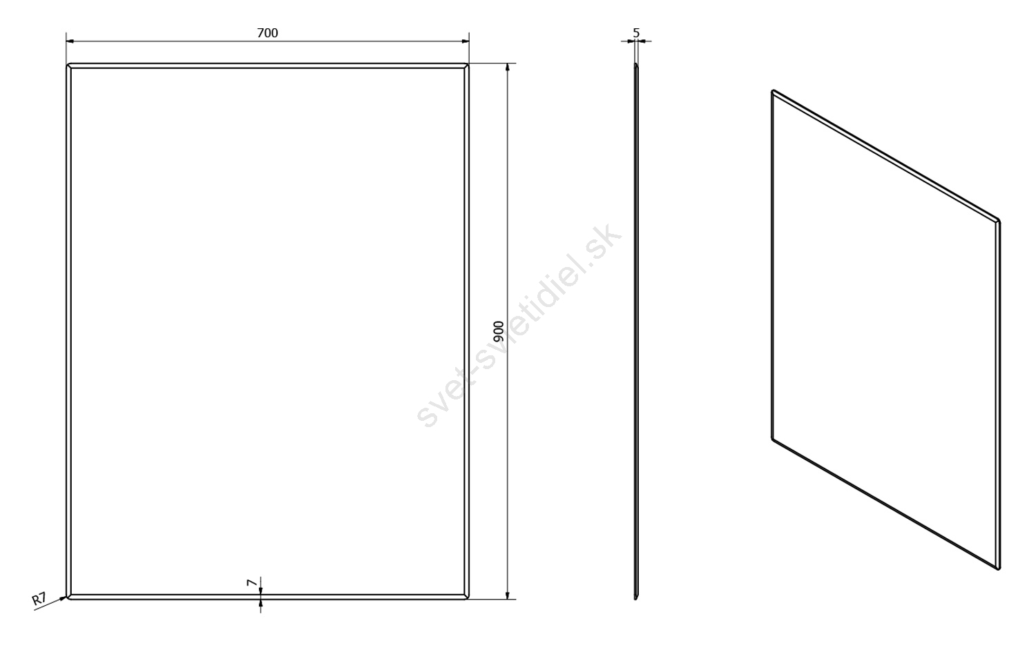 • Zrkadlo disponuje 7 mm širokou fazetou.
