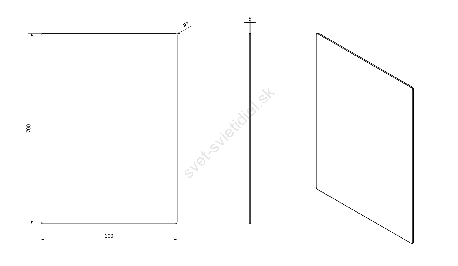• Brúsené zrkadlo bez fazety.
