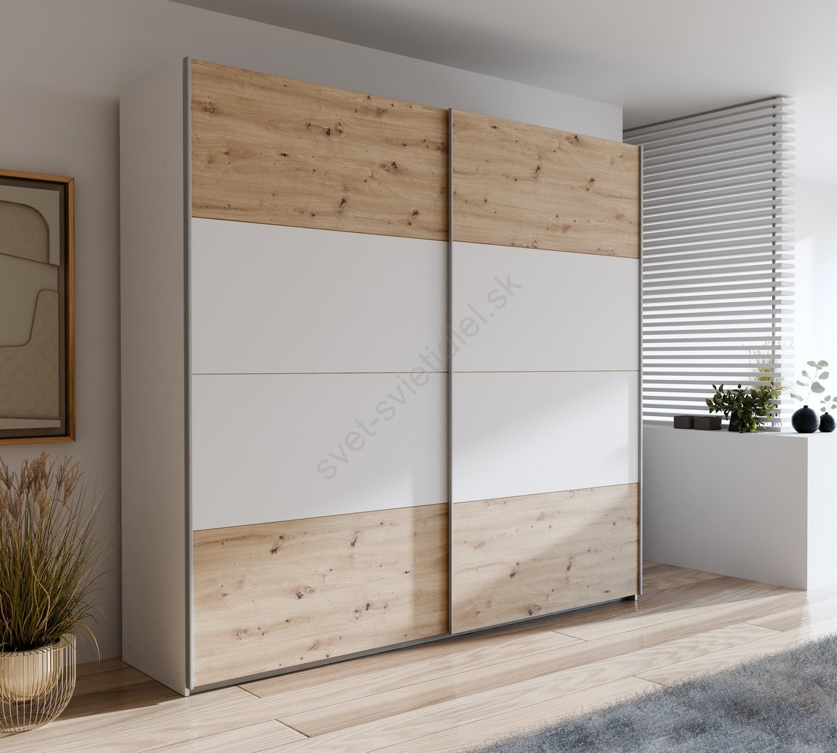 • Šatníková skriňa KARO 220x210 cm biela/dub artisan