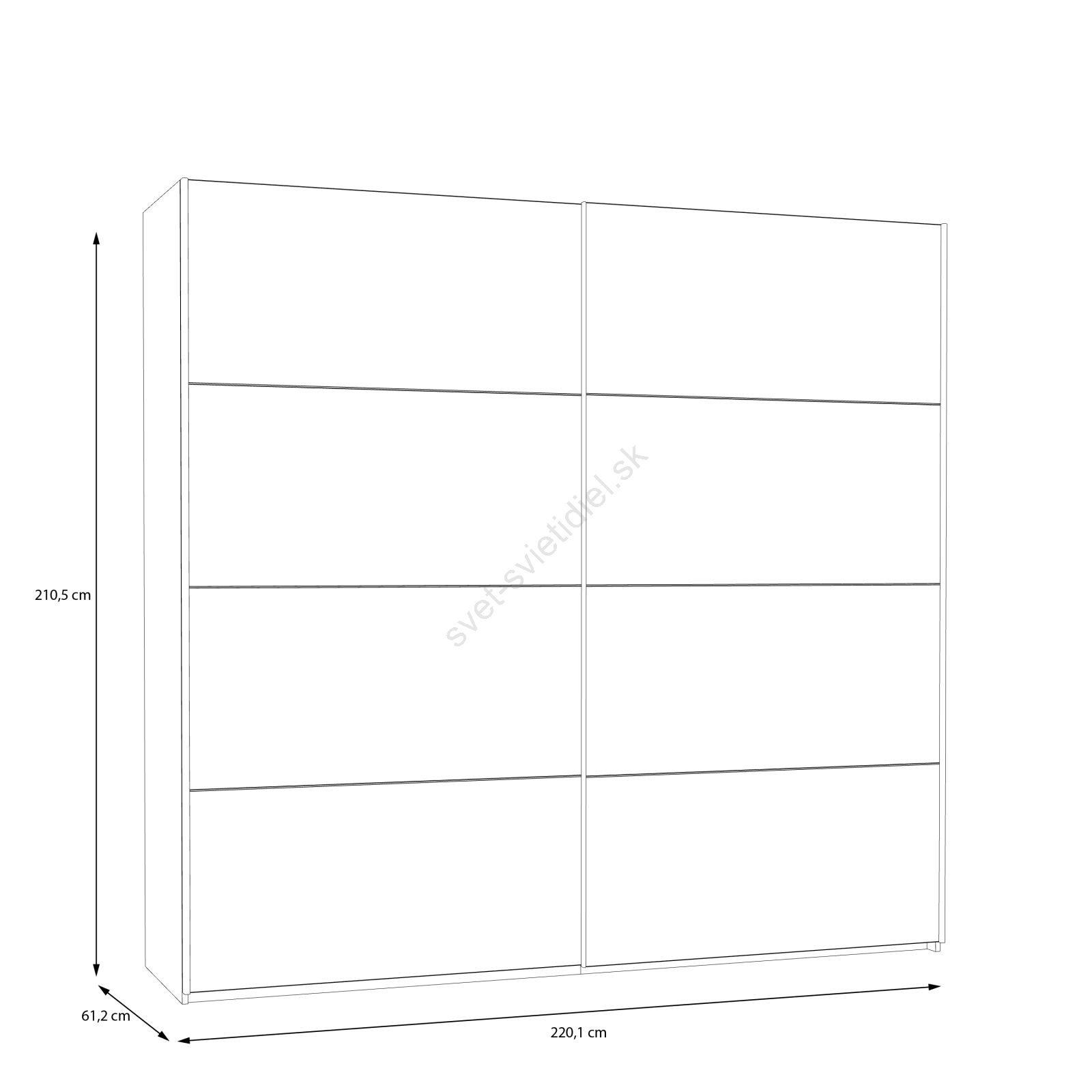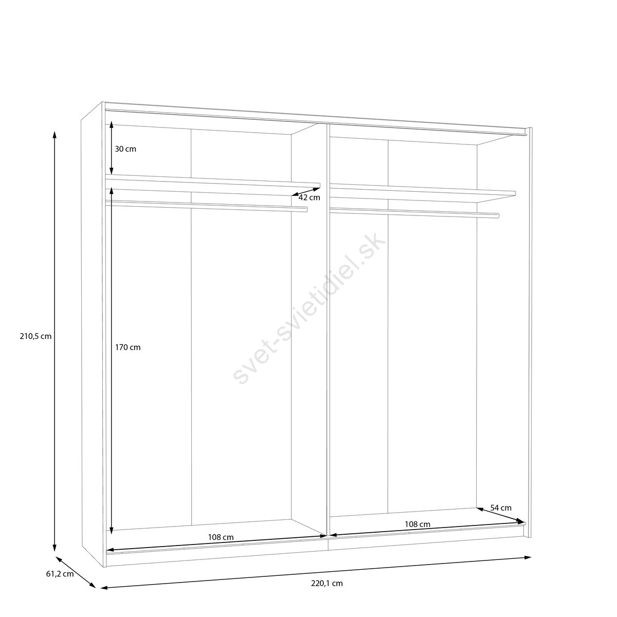 • Skriňa disponuje šatnými tyčami, policami a veľkým úložným priestorom na vaše oblečenie, tašky a sezónne veci.