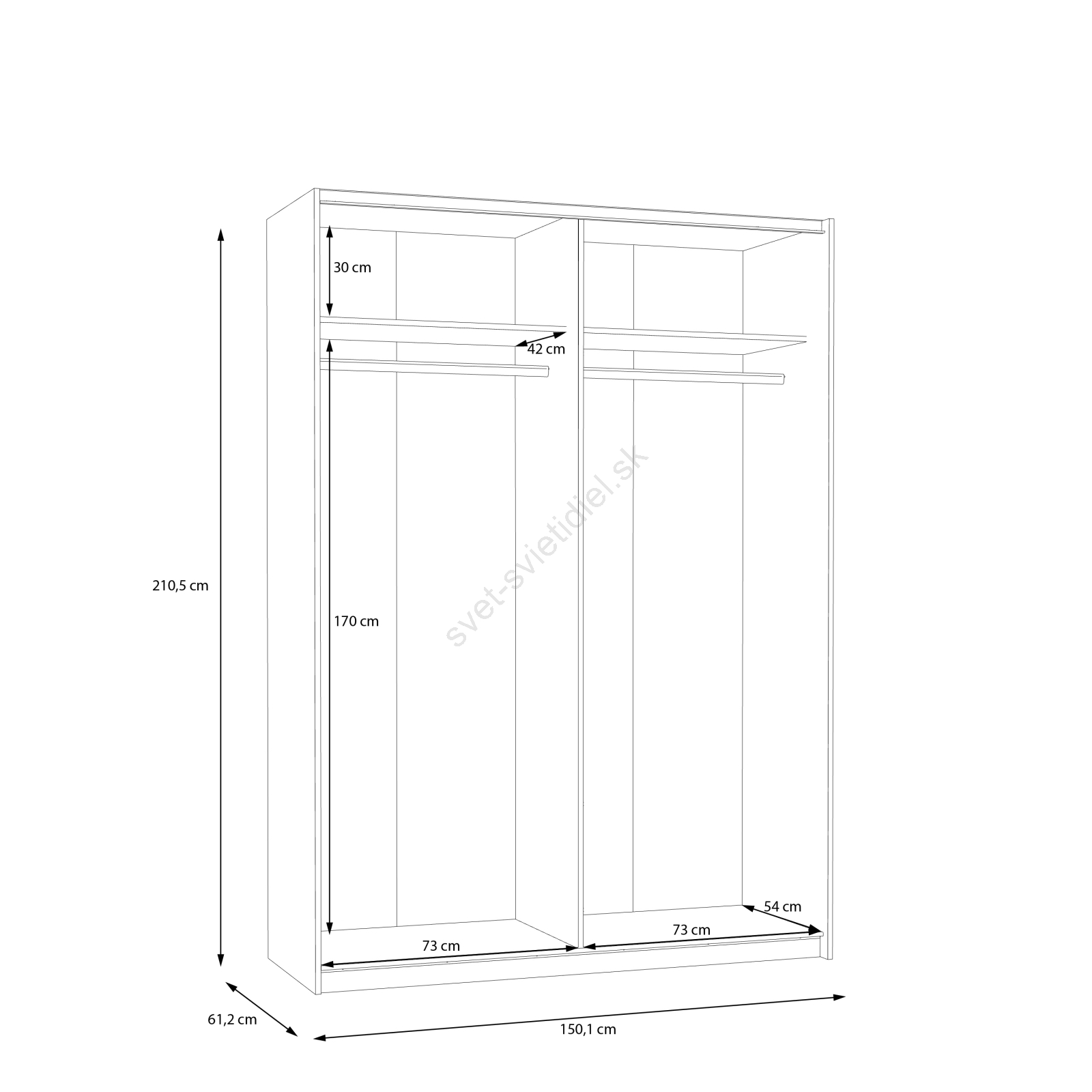 • Skriňa disponuje šatníkovými tyčami, policami a veľkým úložným priestorom na vaše oblečenie, tašky a sezónne veci.