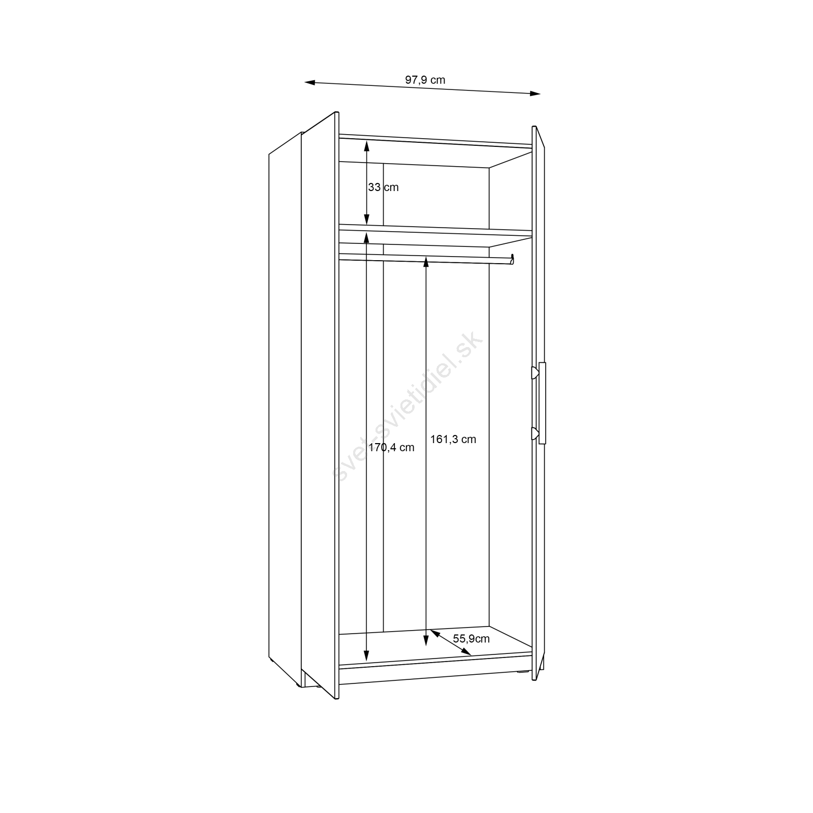 • Skriňa disponuje vešiakovou tyčou, policami a veľkým úložným priestorom pre vaše oblečenie, tašky a sezónne veci.