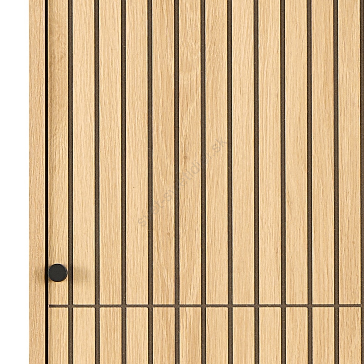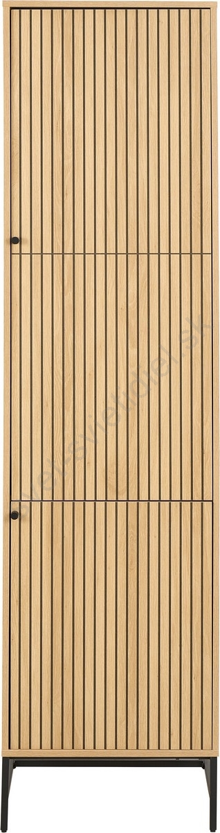 • Táto skriňa v dubovom vzhľade s lamelovým čelom prináša vášmu domovu štýl a praktické riešenie úložného priestoru.