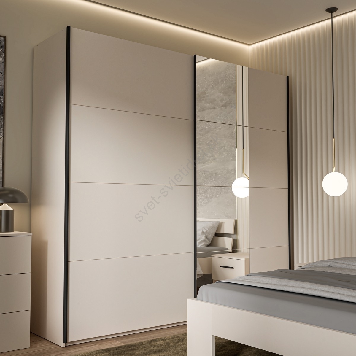 • Zrkadlová plocha šatníkovej skrine je dokonalým spojením funkčnosti a estetiky, umožní vám pohľad na seba v plnej kráse.