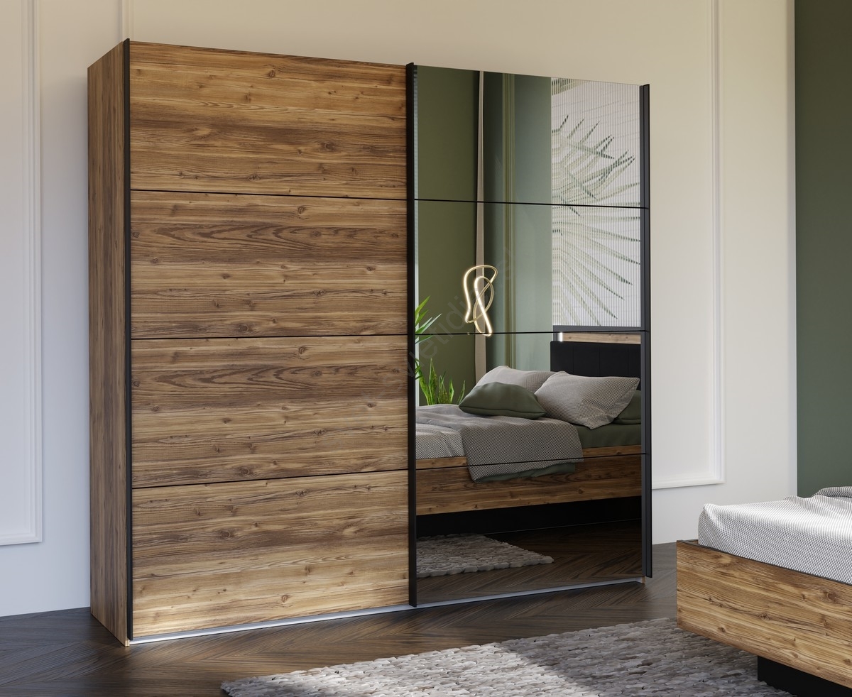• Šatníková skriňa so zrkadlom OREN 220x210 cm dub artisan