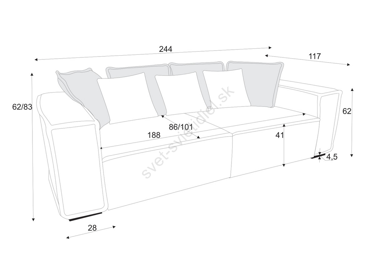 • Kvalitné čalúnenie zadnej časti umožňuje umiestnenie pohovky voľne v priestore.