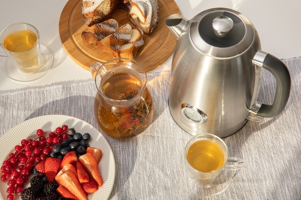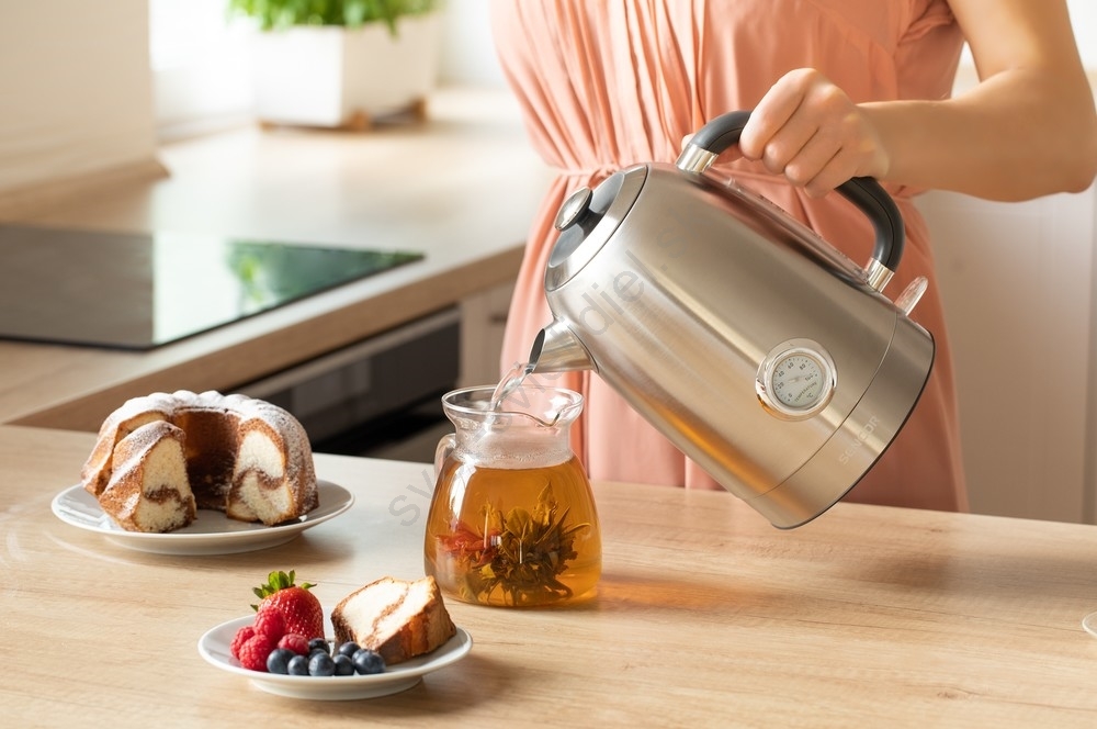 • Rýchlovarná kanvica s teplomerom, vďaka ktorému dosiahnete optimálnej teploty pre rôzdne druhy čajov a kávy atď.