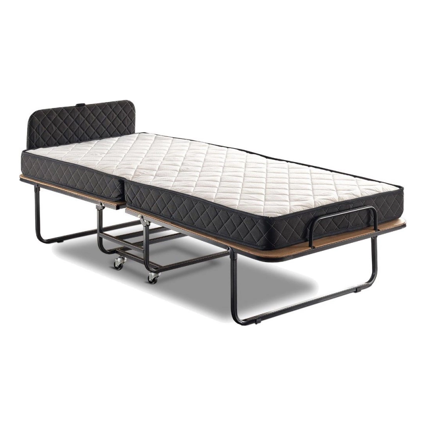 Skladacia kovová jednolôžková posteľ HERON 90x204 cm biela nosnosť 120 kg