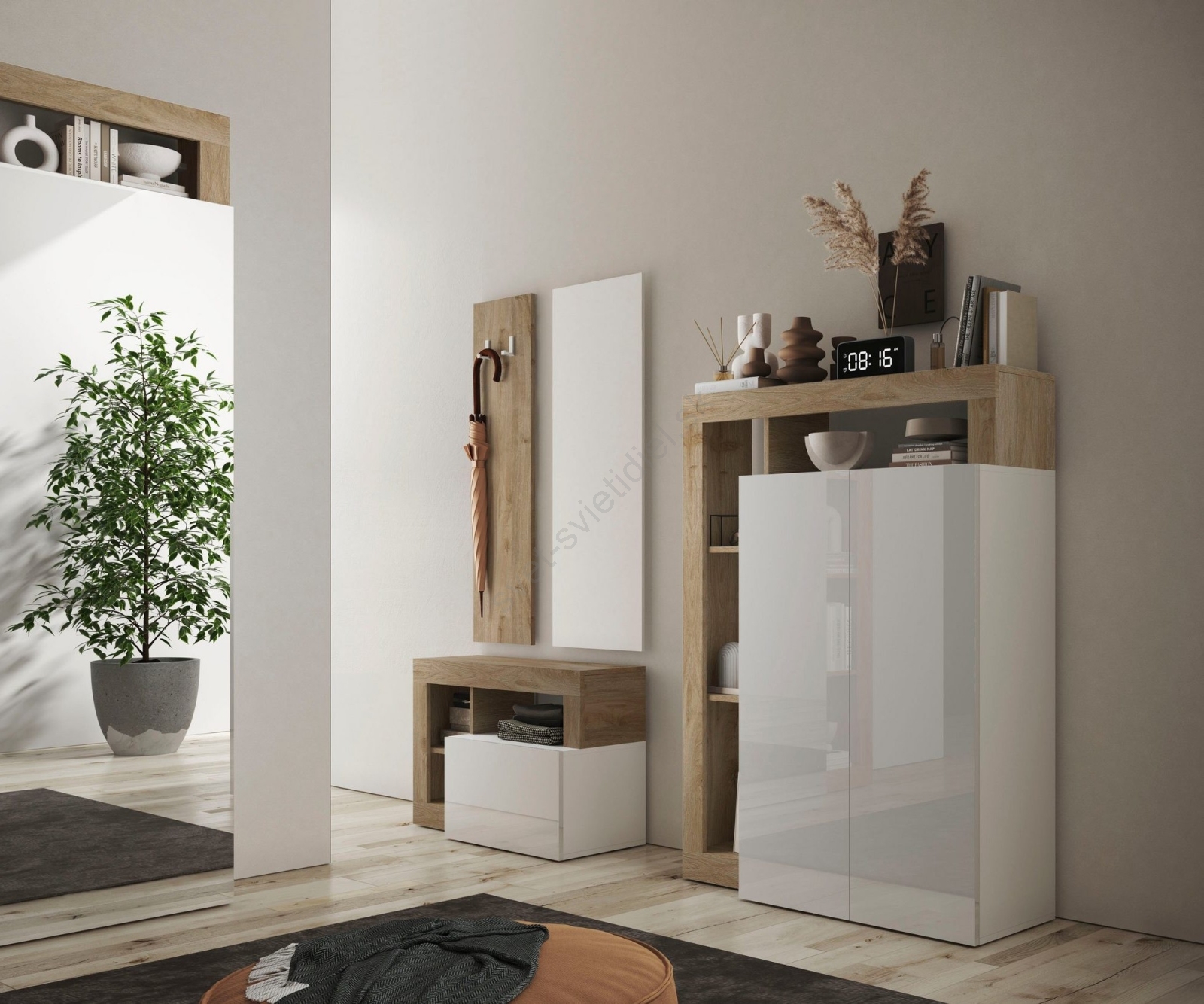 • Disponuje 4 otvorenými policami a 5 vnútornými priehradkami na uloženie tašiek, topánok a sezónnych vecí.