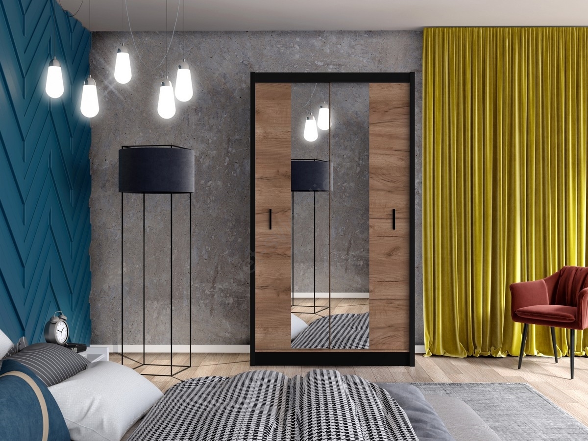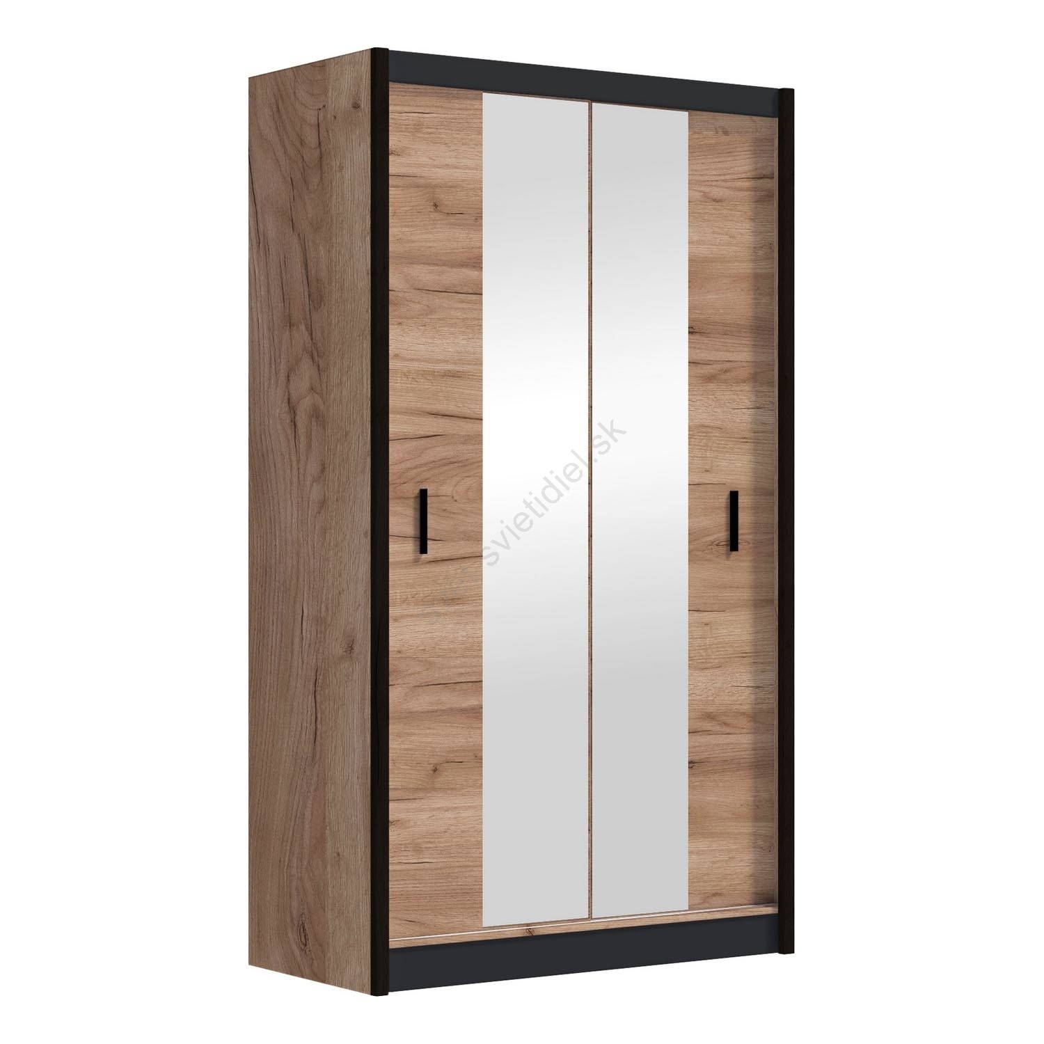 Šatní skriňa so zrkadlom MIRO 120x215 cm dub craft/čierna