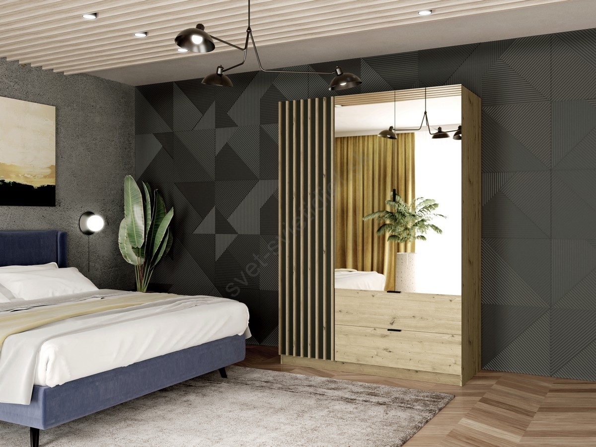 • Šatníková skriňa so zrkadlom VISTA 150x215 cm dub artisan/grafit