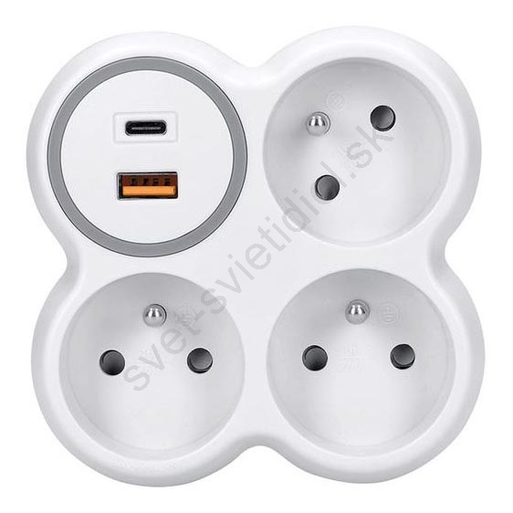 Rozbočovač 3x 16A + USB A+C rýchlonabíjačka 20W