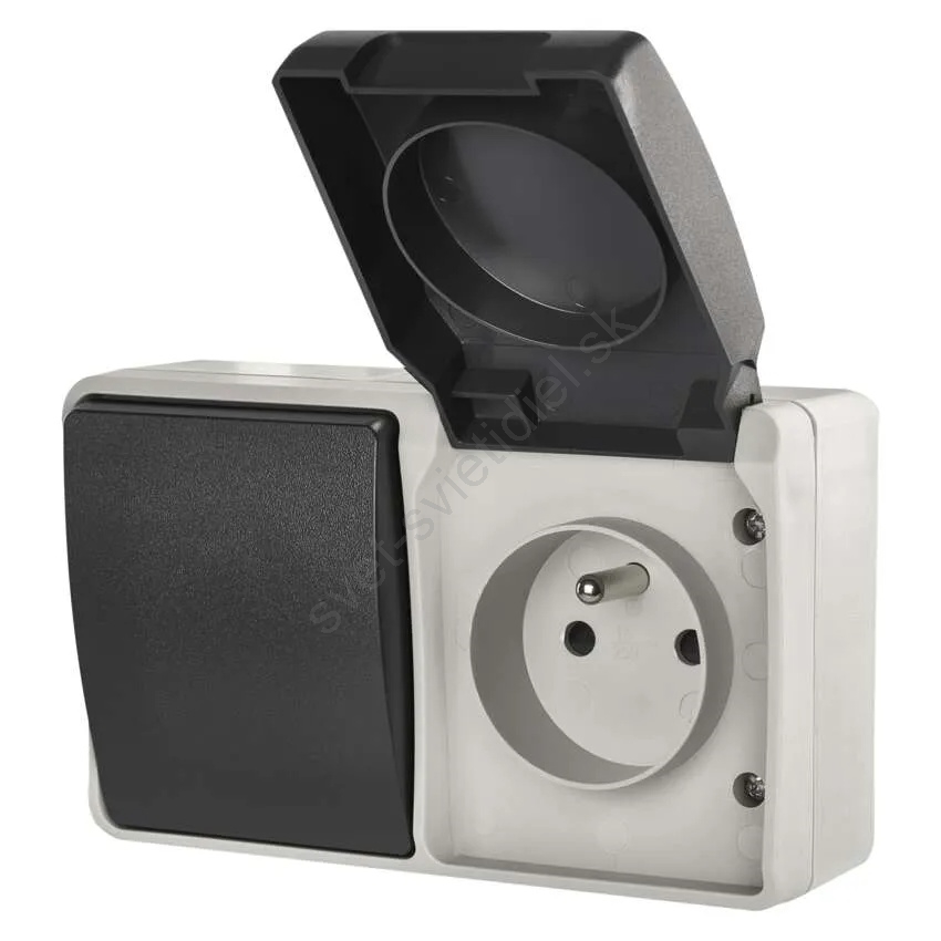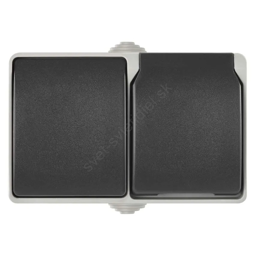 Domový striedavý spínač č. 6 so zásuvkou 250V/16A IP44 sivý