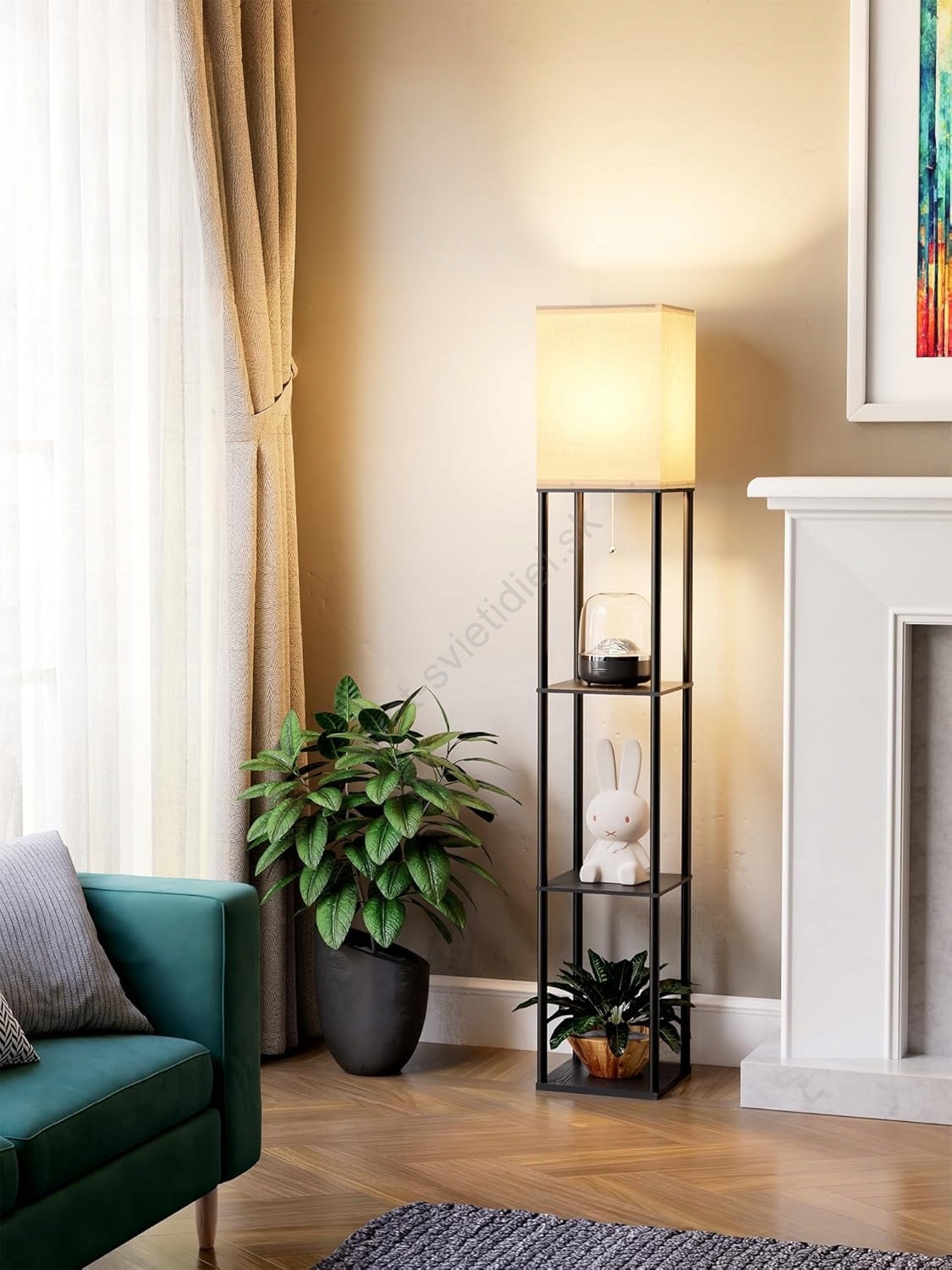 Stojacia lampa s policami 1xE27/40W/230V čierna/biela